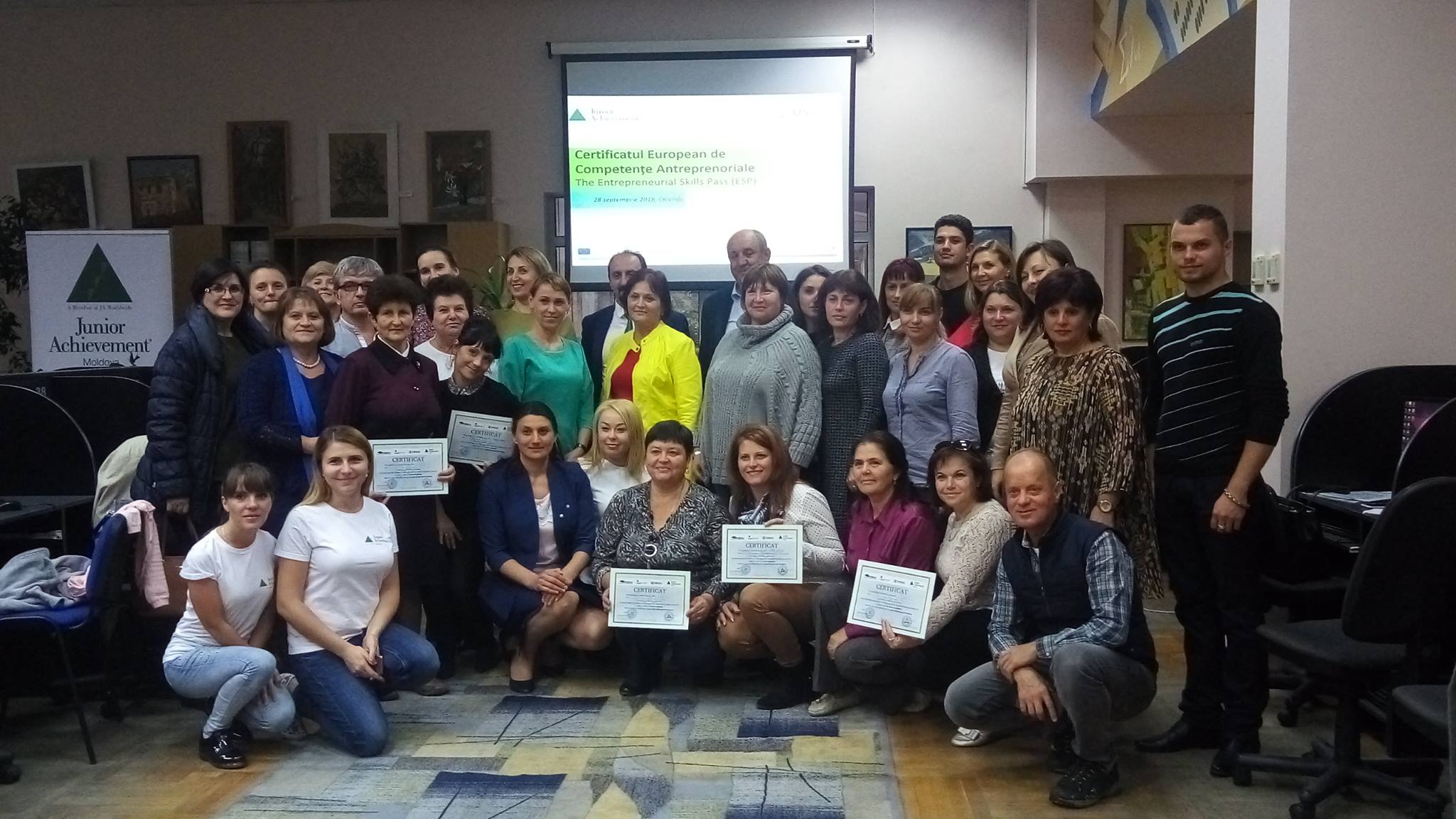 În data de 29 septembrie 2018 s-a desfășurat instruirea cu referire la Certificatul pentru Competențe Antreprenoriale (ESP) pentru 33 profesori, care predau disciplina opțională educația economică și antreprenorială, organizată de către Junior Achievement Moldova în parteneriat cu Academia de Studii Economice a Moldovei, în cadrul Programului ”Susținerea educației antreprenoriale în Europa și Eurasia”, finanțat de către USAID.